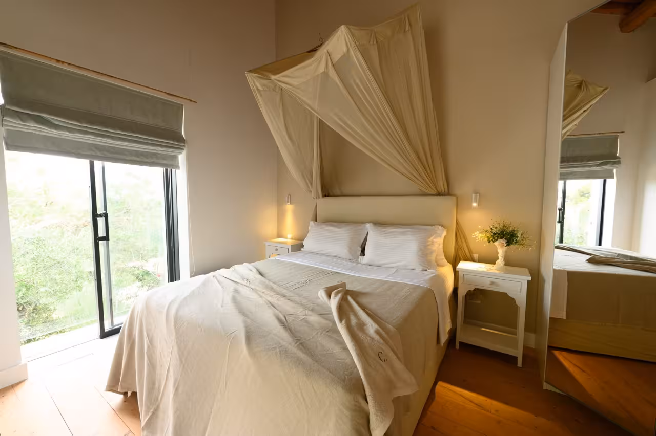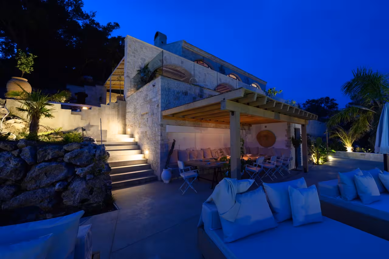 Eco-friendly with self-sufficient systems, the villa offers magical sea views, mountain views towards the mysterious West coast, and views of the island of Kyriadiki, with a small ancient church. It is surrounded by beautiful wildlife, creating an atmosphere like no other.