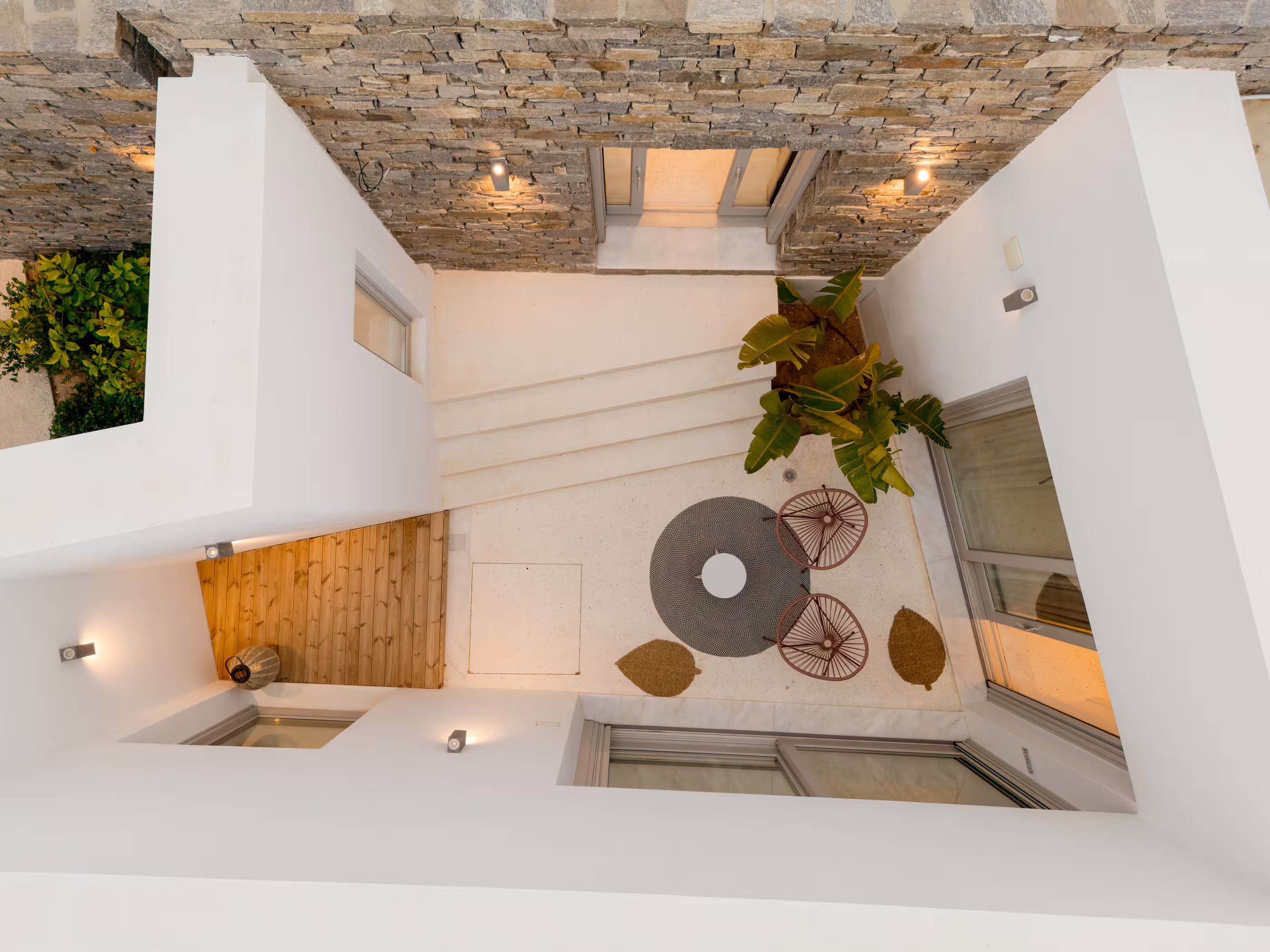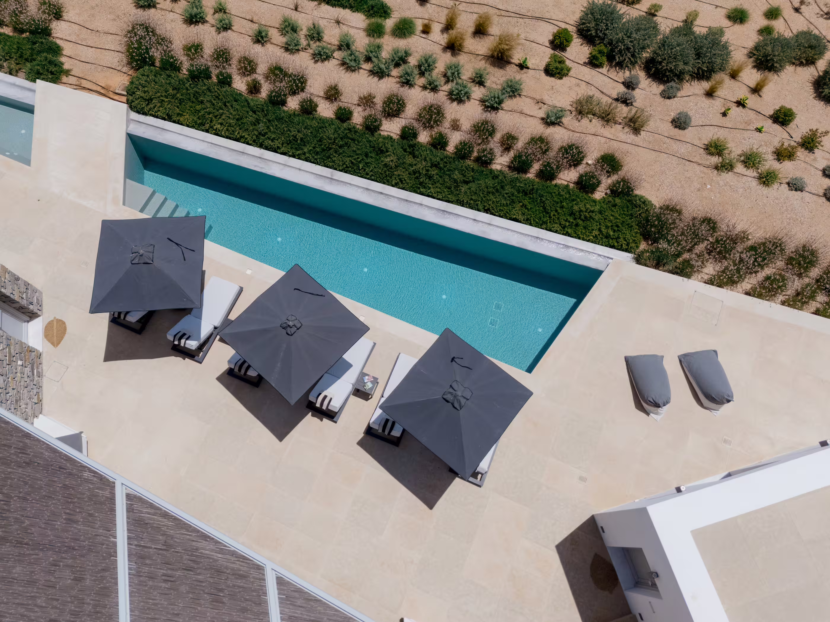 Villa Brisa is a hidden gem with a distinctive architectural style, offering luxurious comforts and breathtaking views of the Aegean Sea and Cycladic Islands. Water elements, earthy tones, and geometric shapes enhance the villa’s serene atmosphere, creating the perfect setting for an unforgettable getaway.