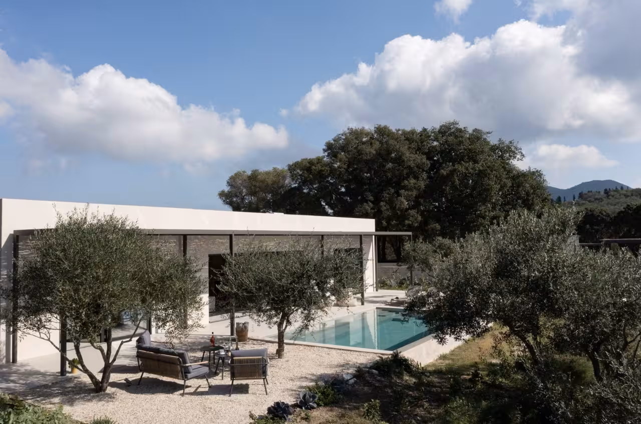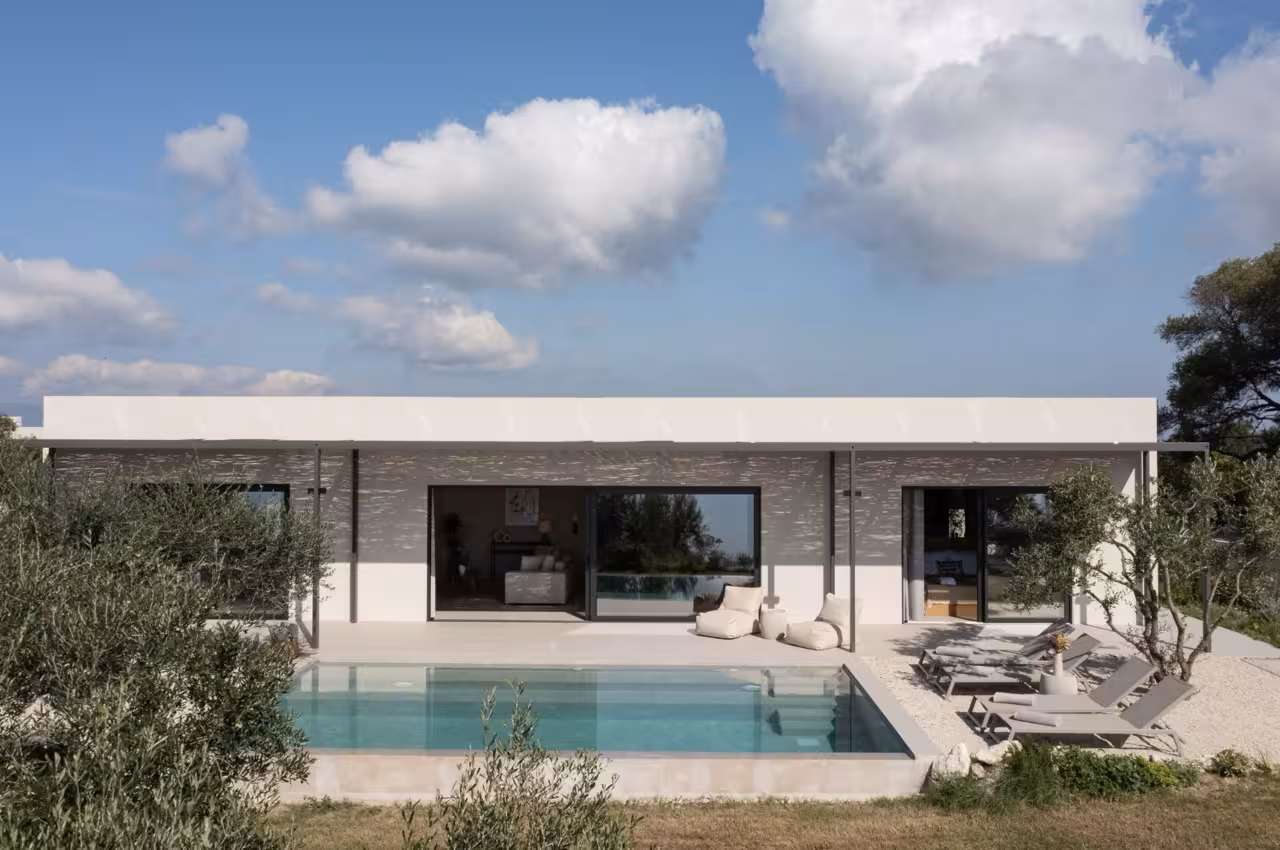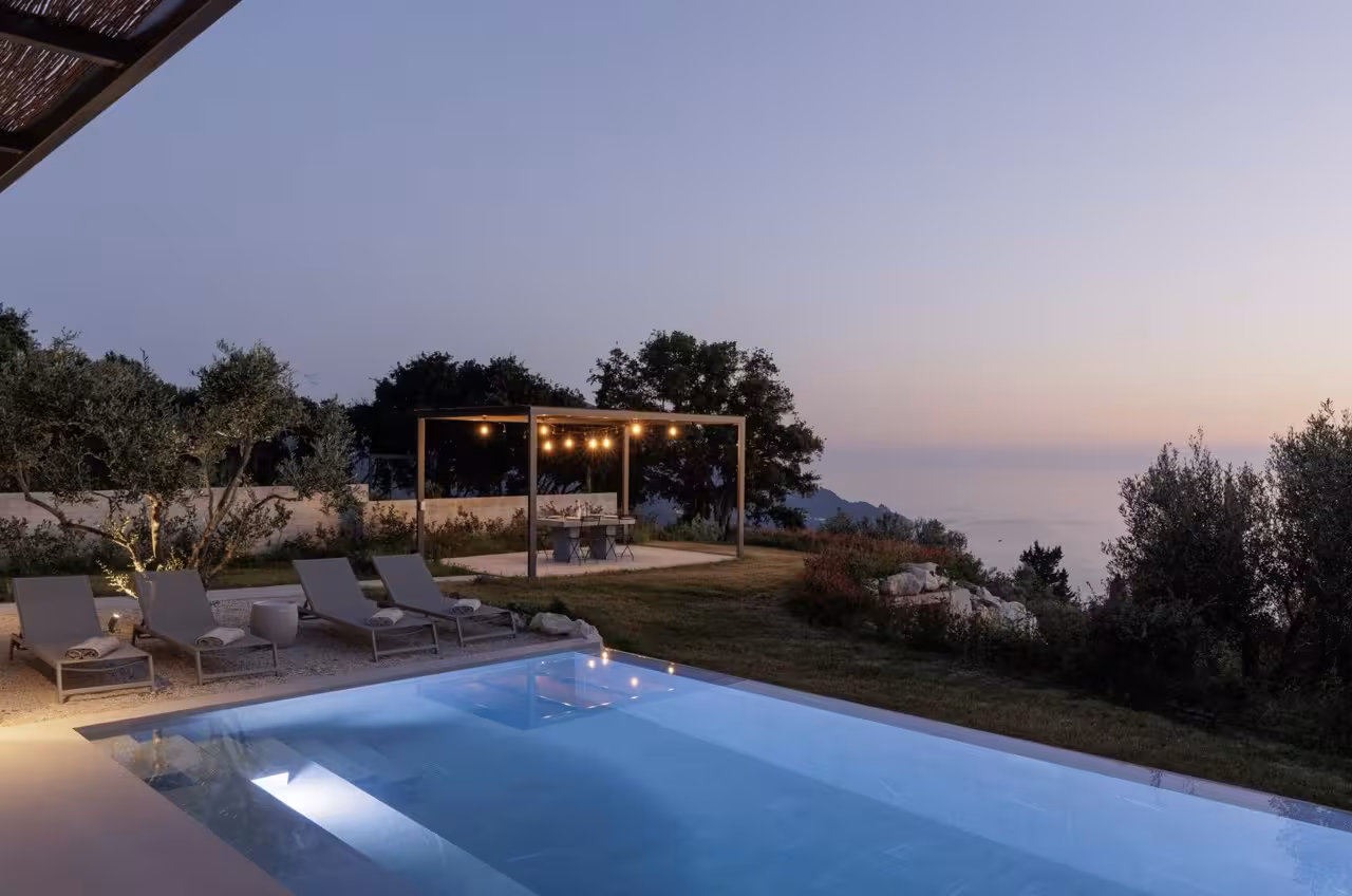 A stunning trio of two-bedroom luxury villas with private pools, set within 40 acres of natural beauty and offering breathtaking 180-degree views over Corfu’s Sunset Coast, the Ionian Sea, and the beaches of Agios Giordios and Glyfada.