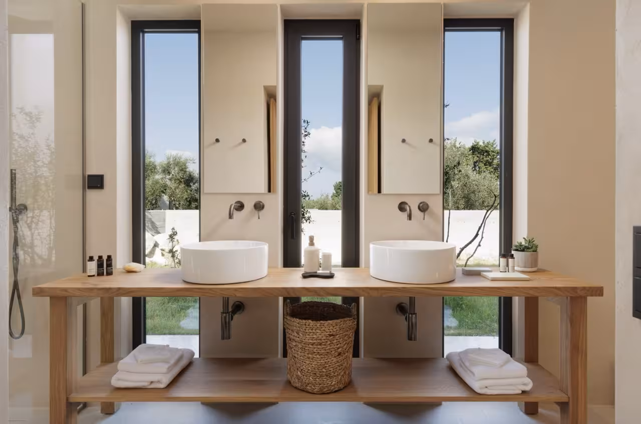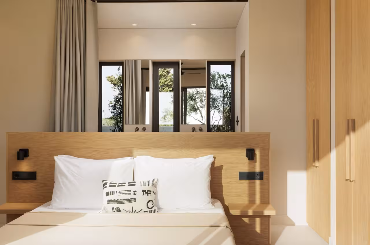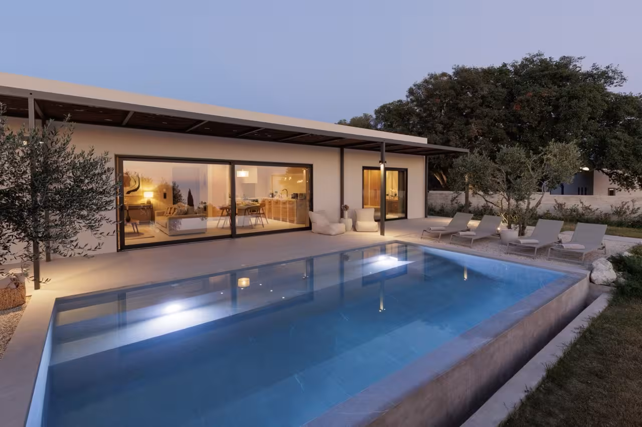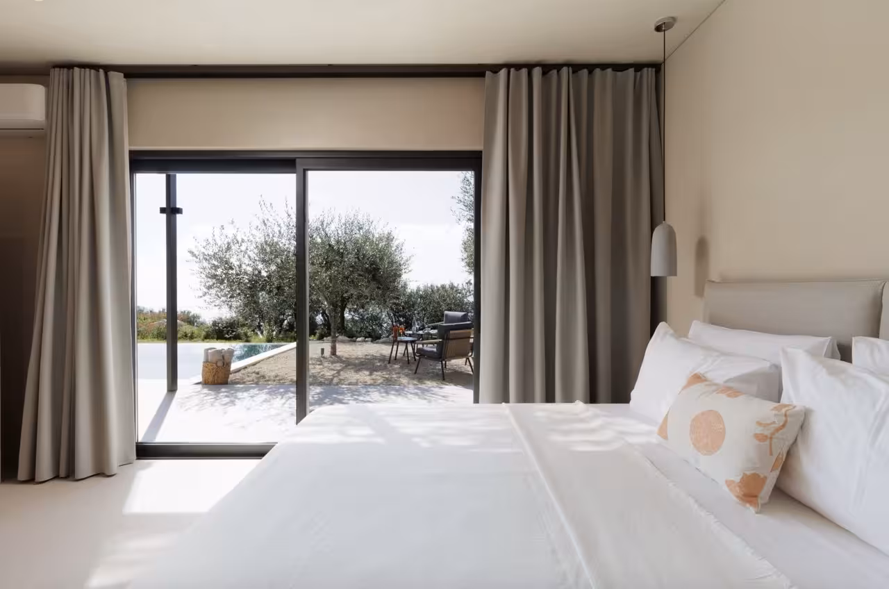 A stunning trio of two-bedroom luxury villas with private pools, set within 40 acres of natural beauty and offering breathtaking 180-degree views over Corfu’s Sunset Coast, the Ionian Sea, and the beaches of Agios Giordios and Glyfada.