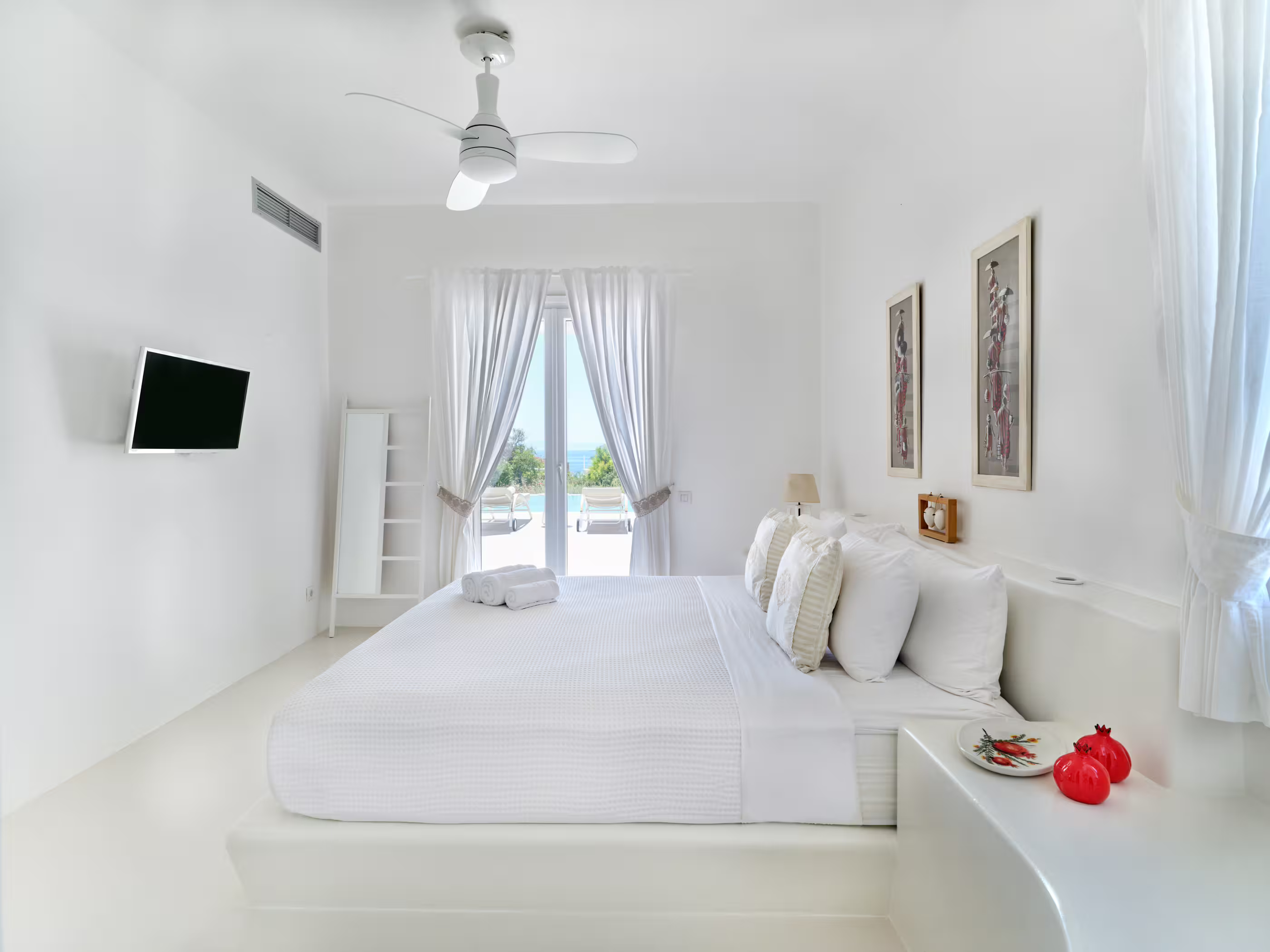 - Bedroom 2 (king-size bed, en-suite, pool access)