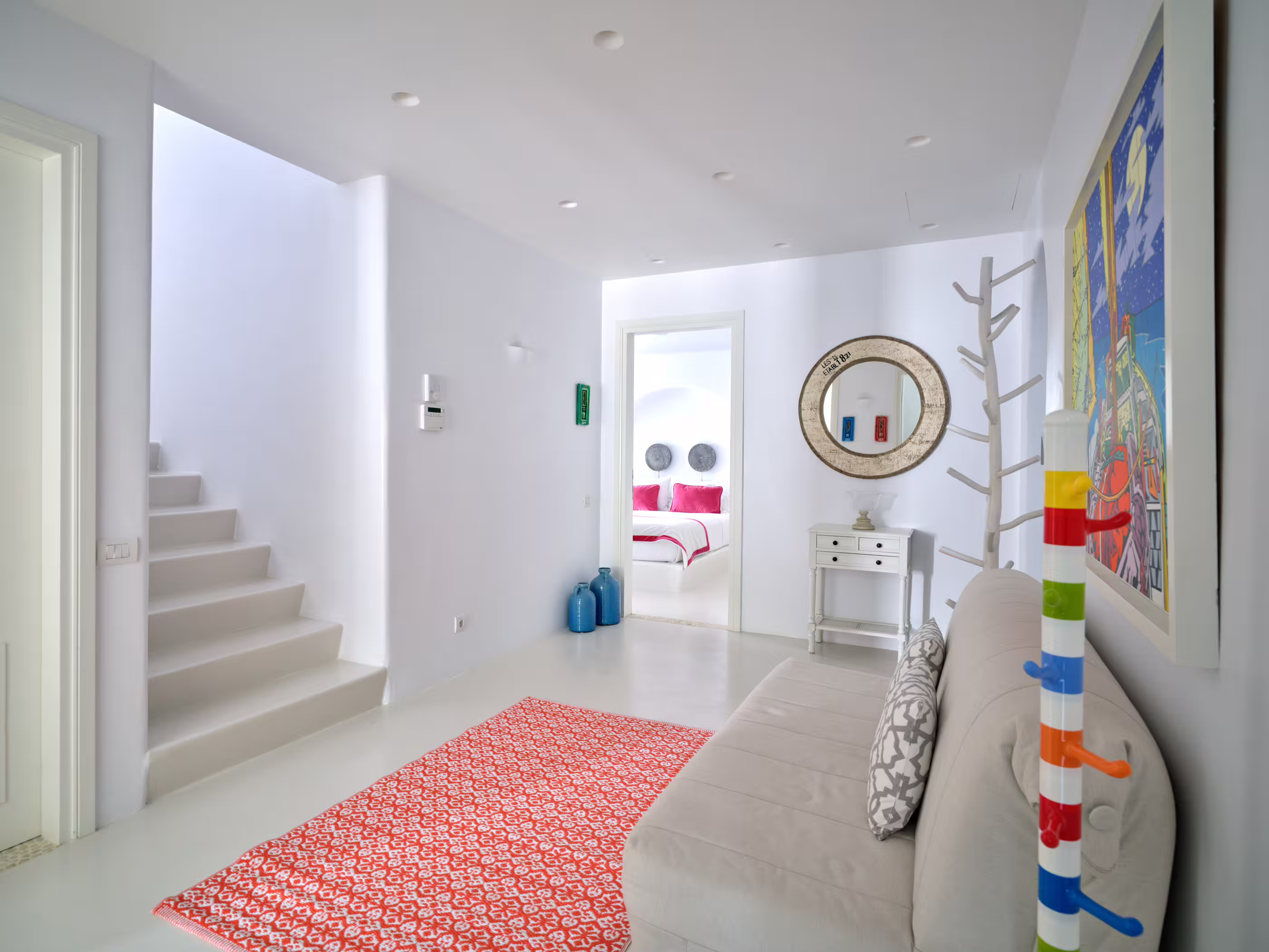Bright lounges, white, turquoise.