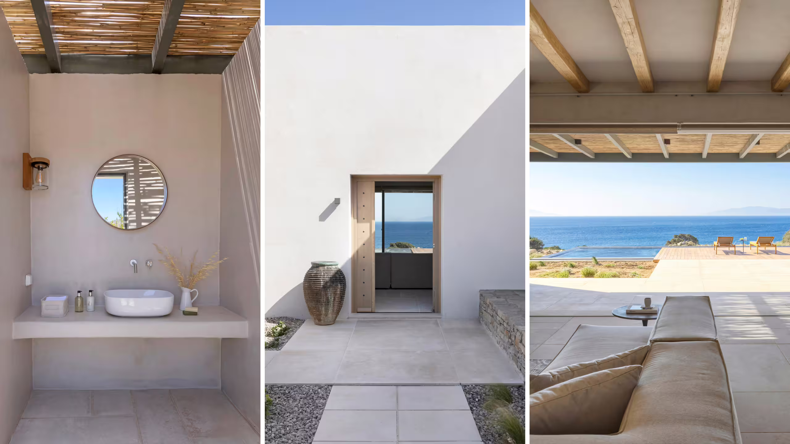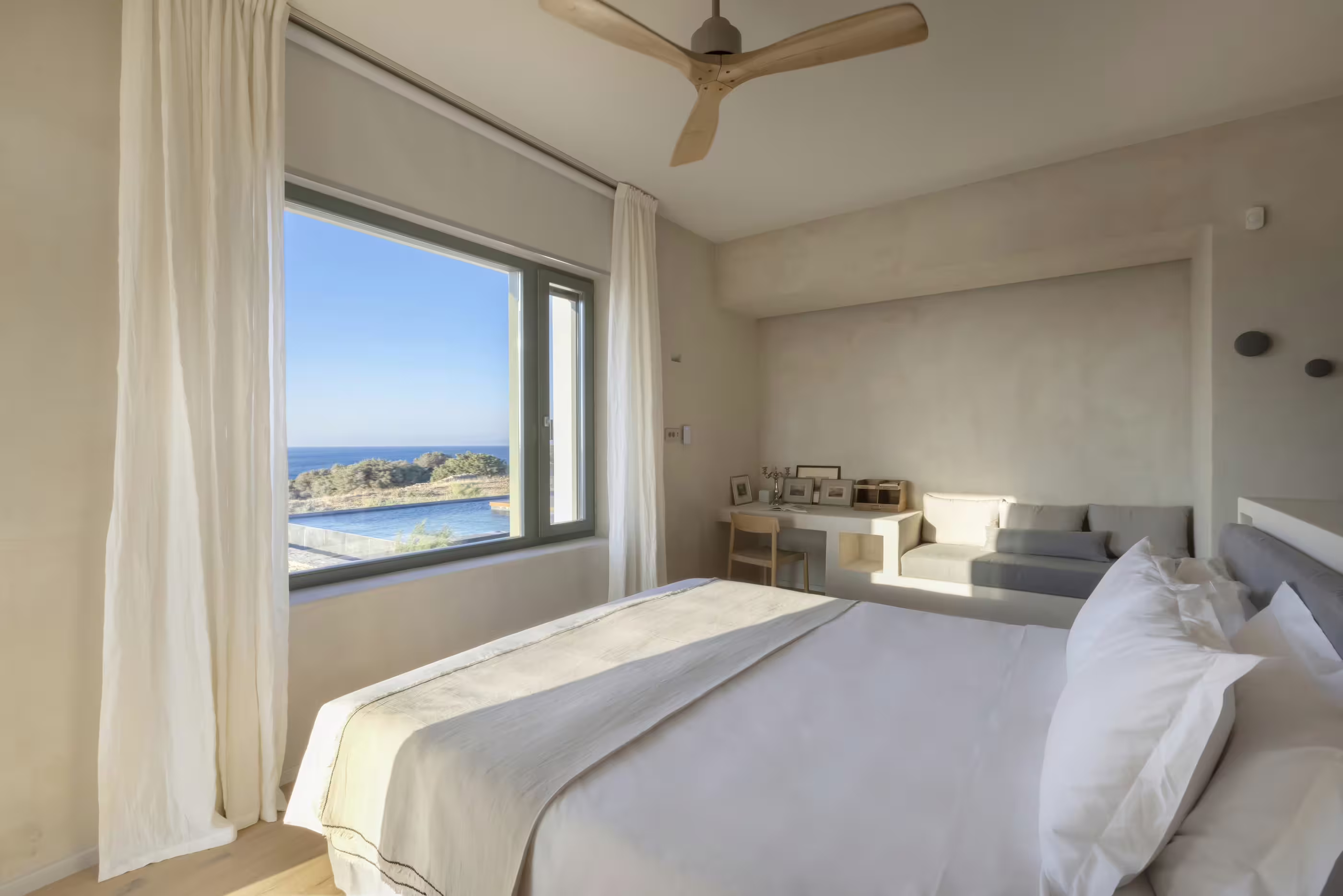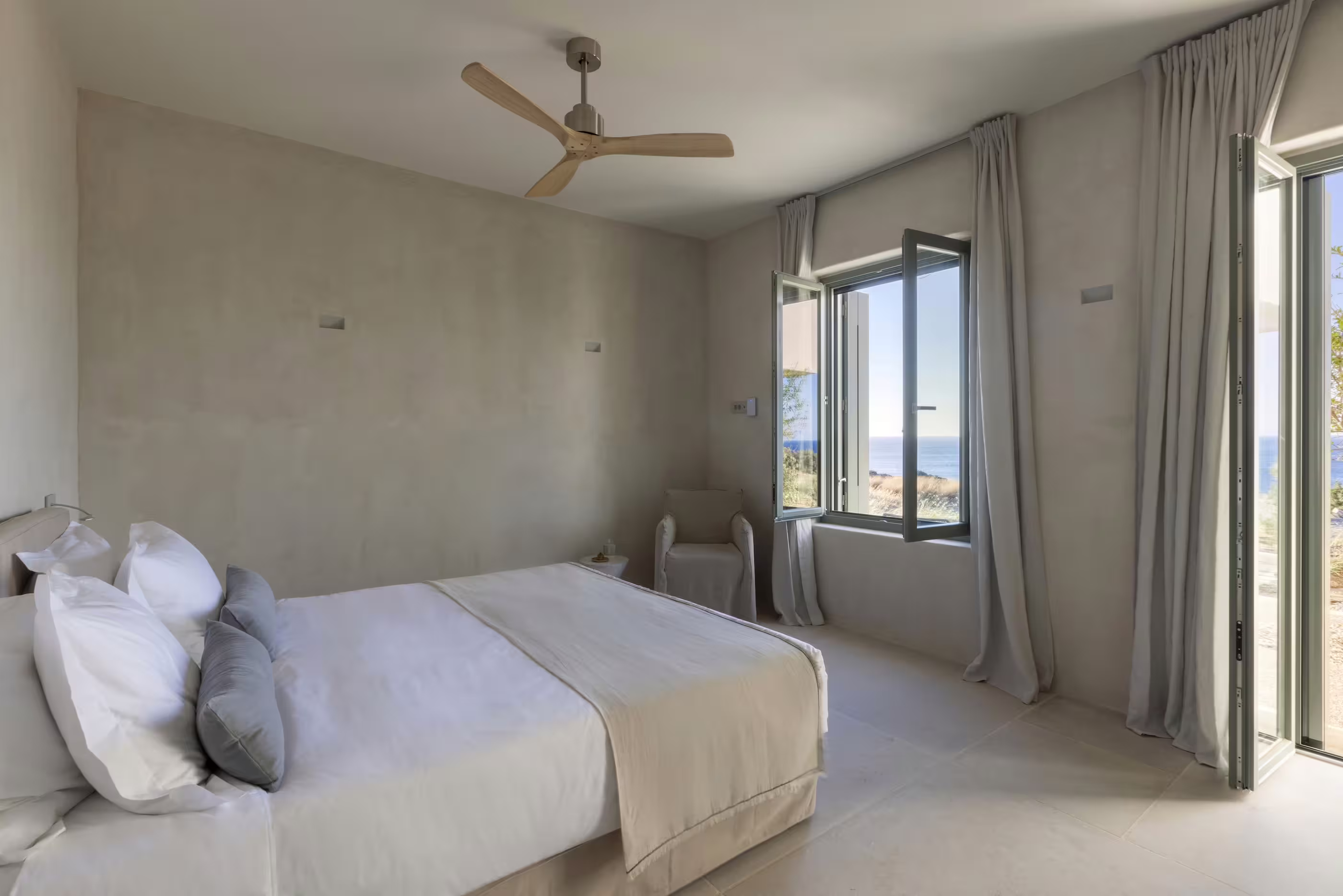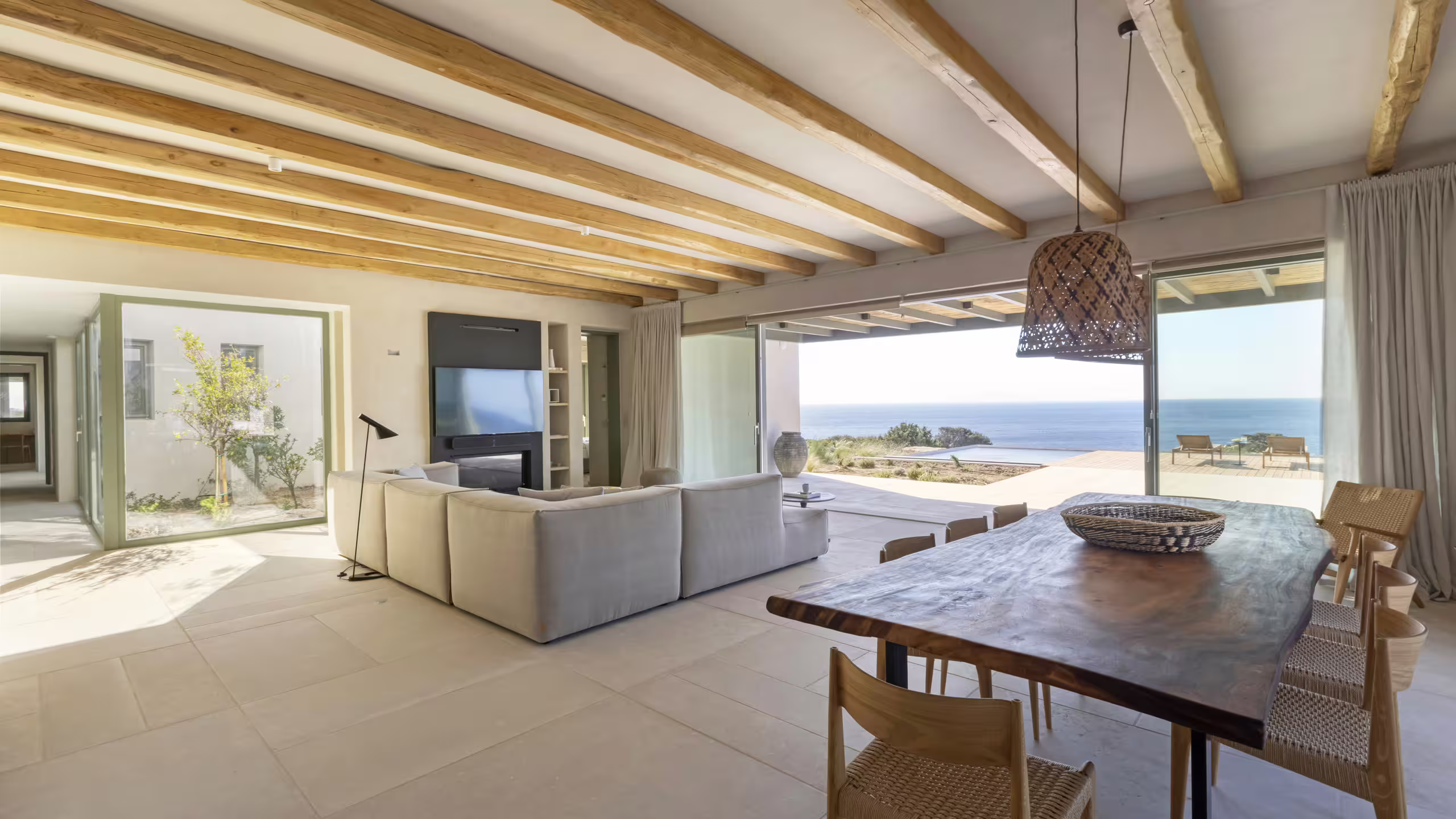 On the serene southern coast of Paros sits Villa Helia, an impressive property framed by untouched natural beauty. Completely private, the villa stands alone with easy, direct access to the sea—whether by stepping down the rocky path in front, strolling toward Glyfa and Pastelos beaches nearby, or exploring secluded coves along the shoreline.