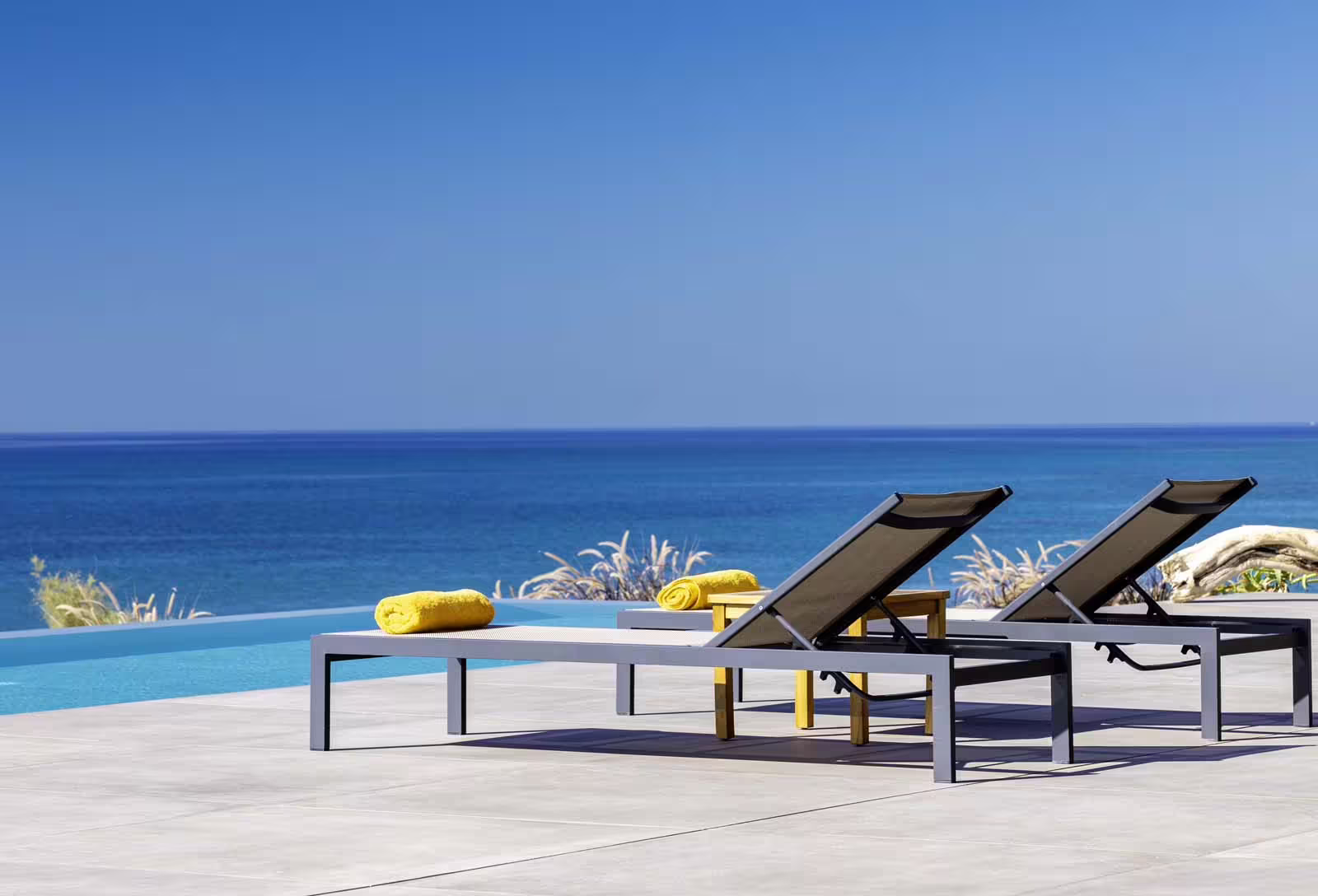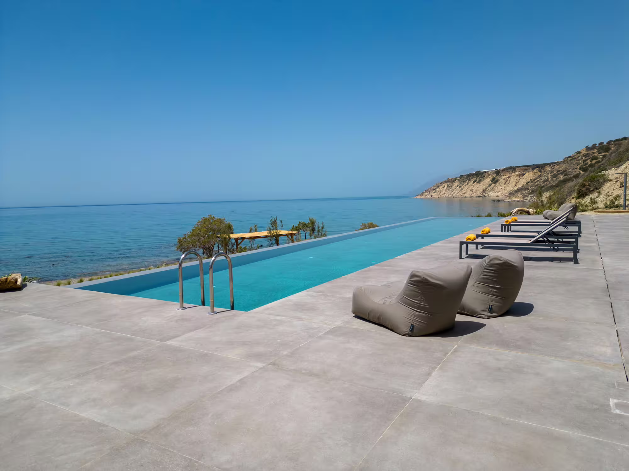 Nestled among Crete’s sand dunes, this beachfront luxury villa seamlessly blends with its surroundings. Just steps from the crystal-clear waters of the Libyan Sea, it offers breathtaking ocean views.