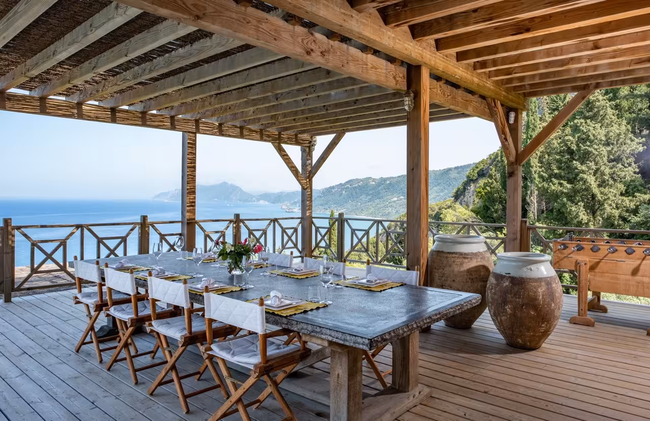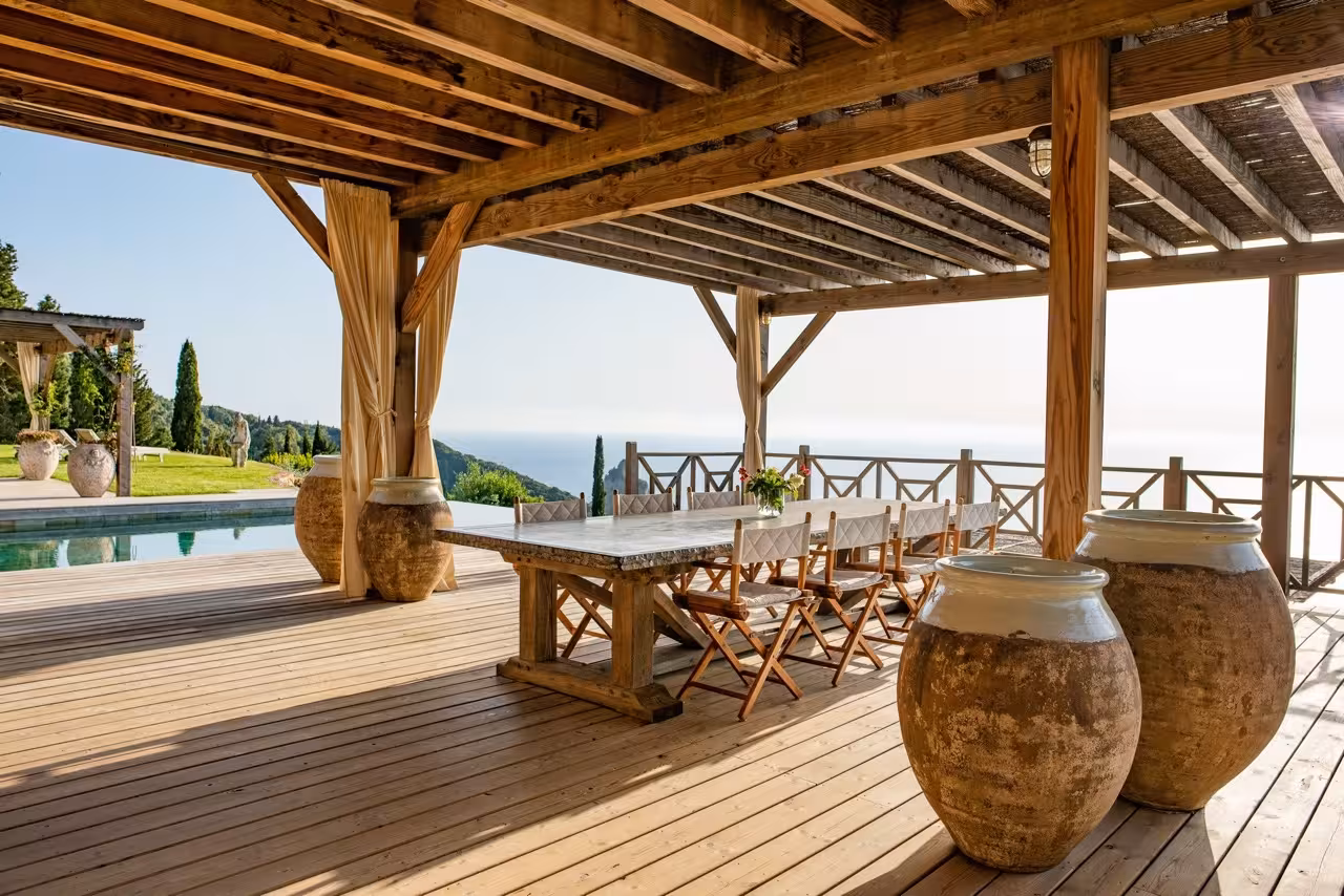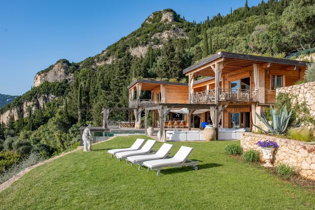 Nestled amongst ancient olive trees on Corfu’s dramatic west coast, the Nissaki Estate is a spectacular seafront retreat, where nature and breathtaking sea views combine to offer a truly unique villa experience. Exquisitely crafted wooden structures and landscaped terraced gardens blend seamlessly with a verdant hillside setting, providing guests with the feeling of complete seclusion in nature.