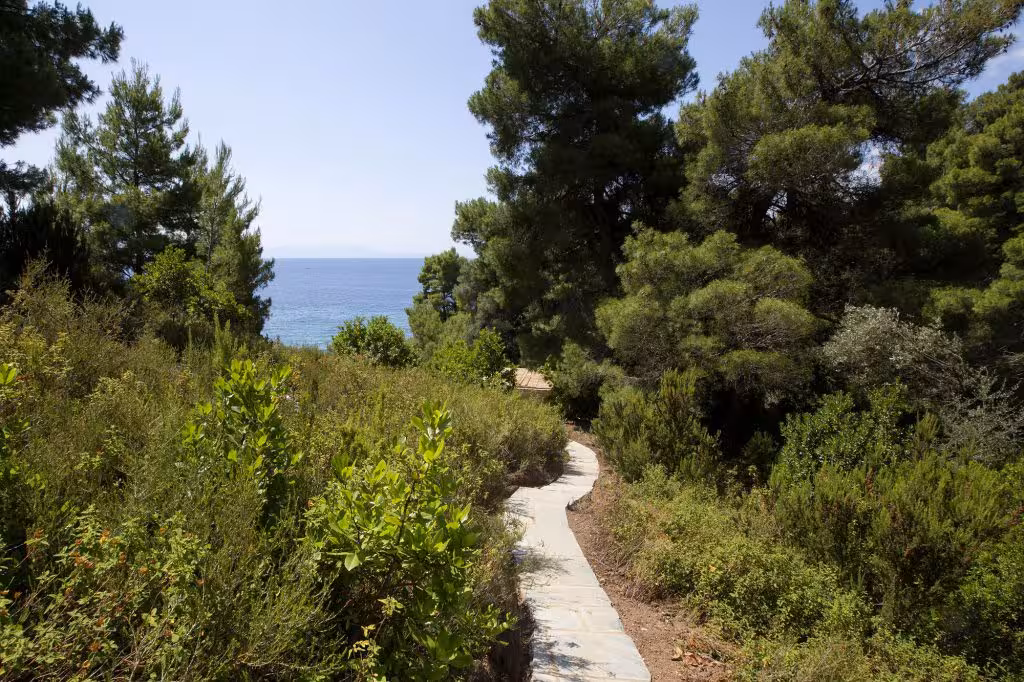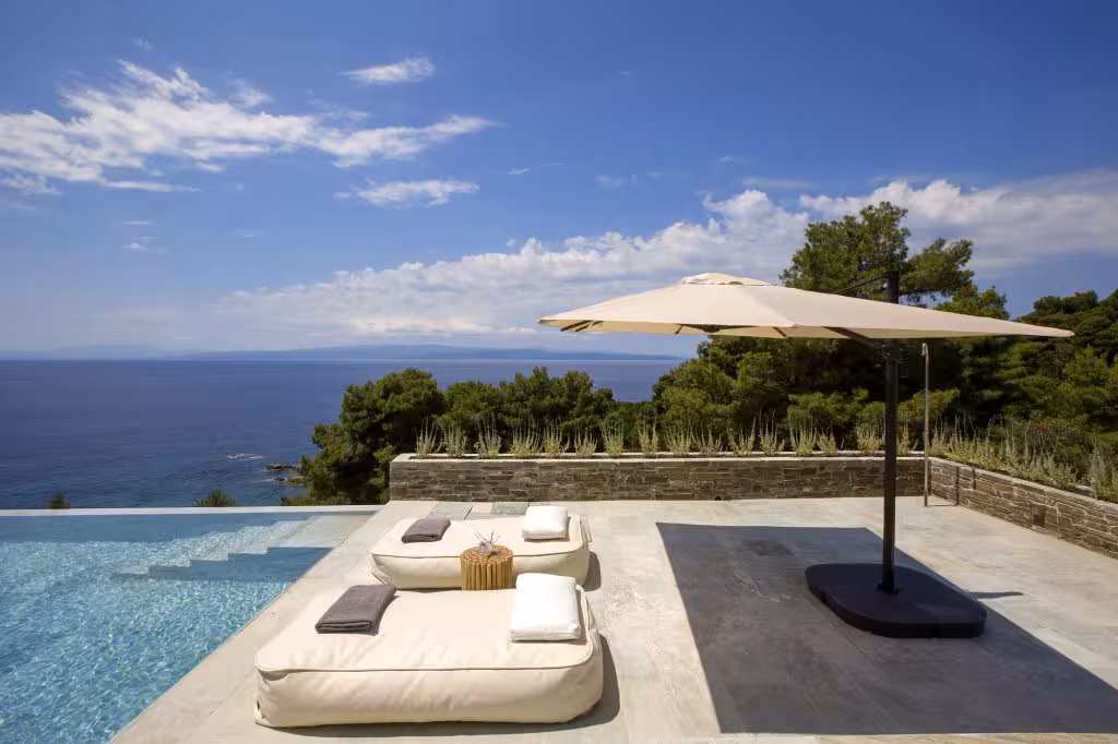 A beautiful green estate completed in 2016 and designed by the awarded Greek architect Katerina Tsigarida. It offers amazing views, a stunning private marble pool, and is surrounded by a wild forest with private access to a sandy beach.