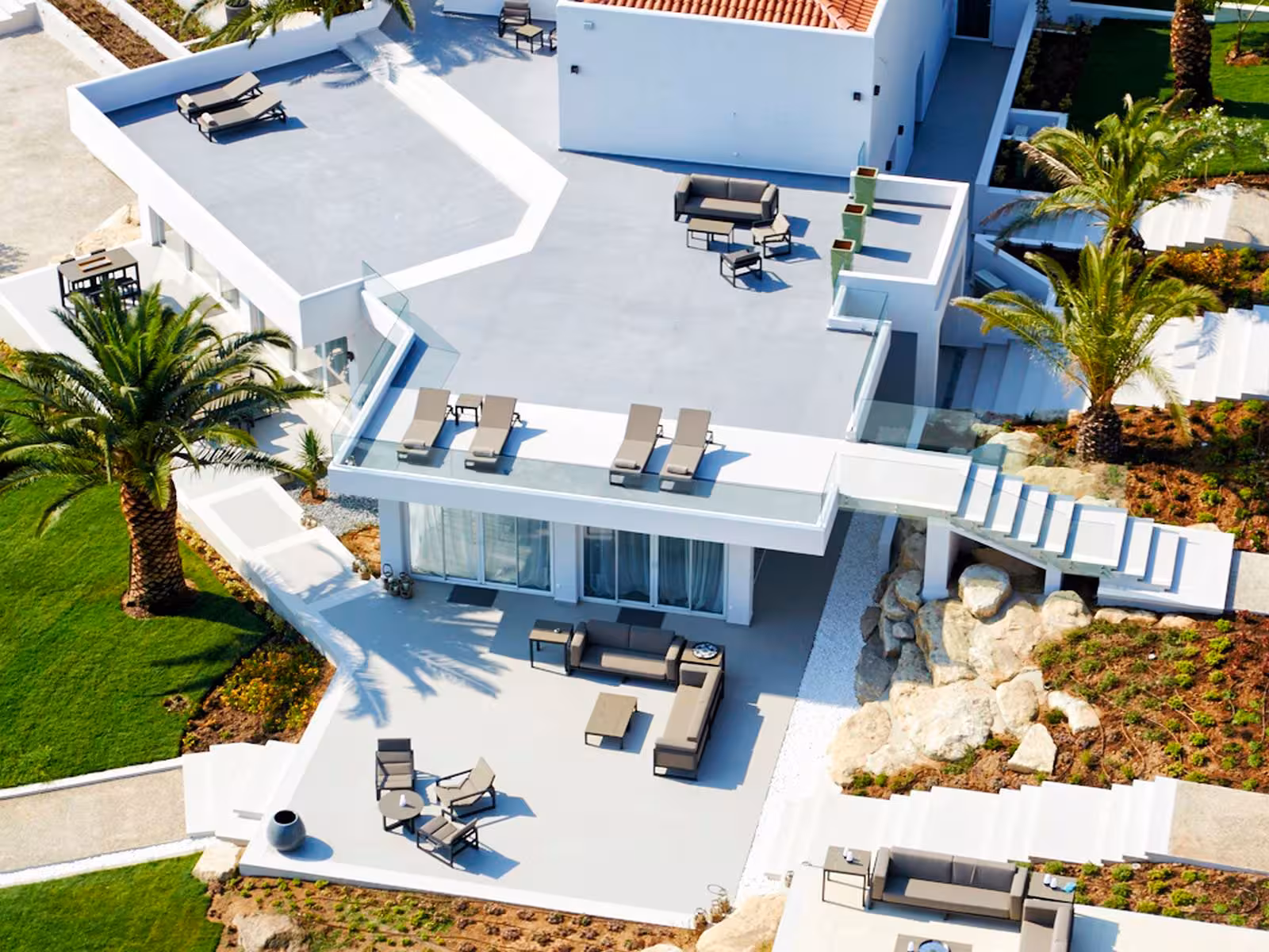 - The external Mini Villa for two (47m²) has a sitting area, a bathroom, a private terrace with sea view and outdoor Jacuzzi