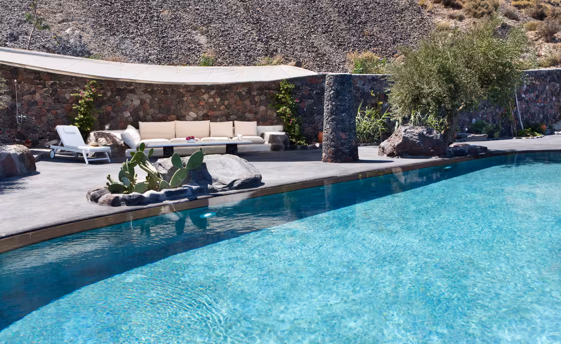 Built in a secluded cove on Therasia, minutes from Santorini, it sits on a restored 1850 pumice mine. Retaining its traditional exterior, the renovated interior blends elegance with contemporary sophistication. This enchanting home offers magnificent sea views and ultimate privacy, featuring four gorgeous bedrooms, including a separate king-size suite, all with personal bathrooms.