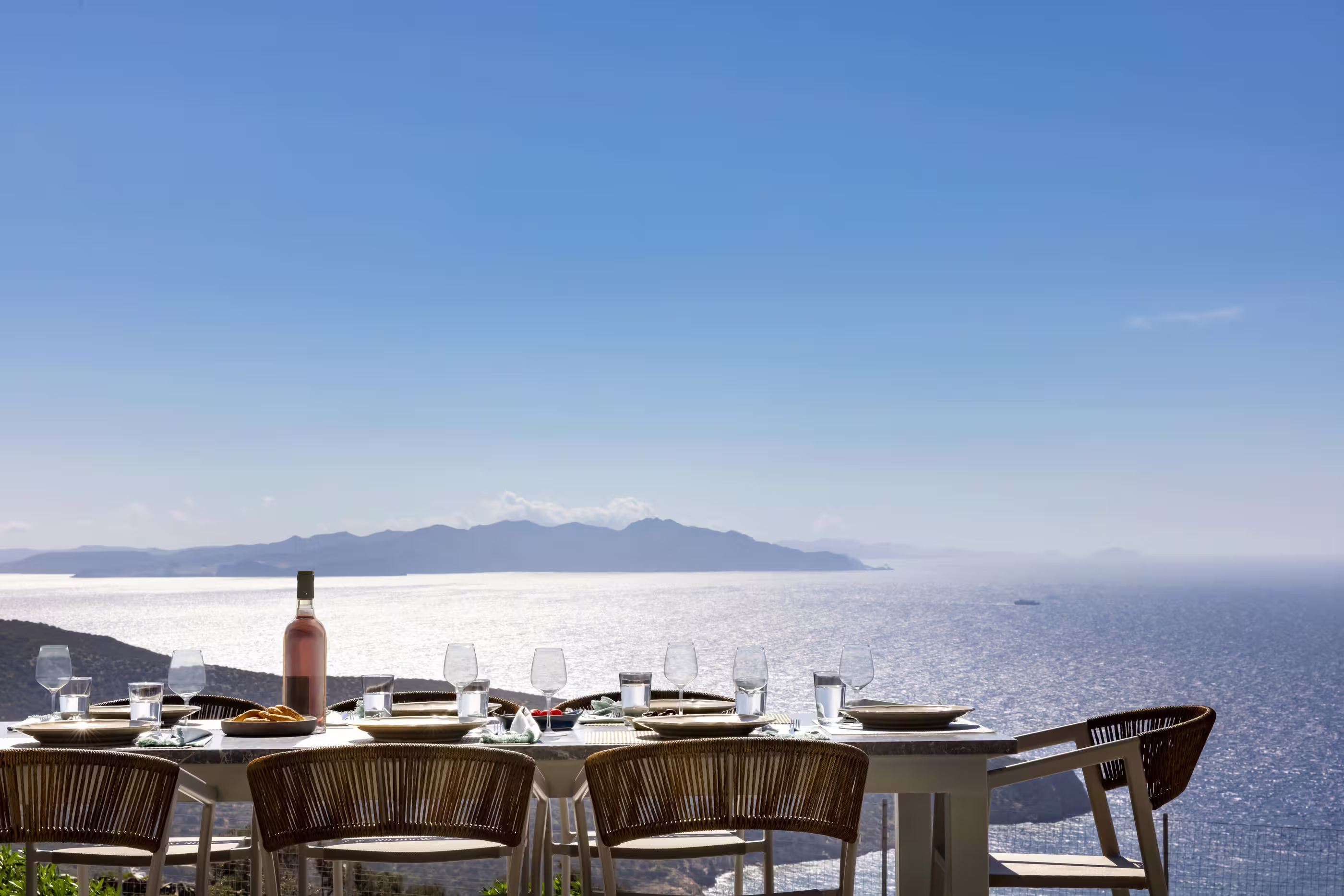 Above Vathy port with 360° views.