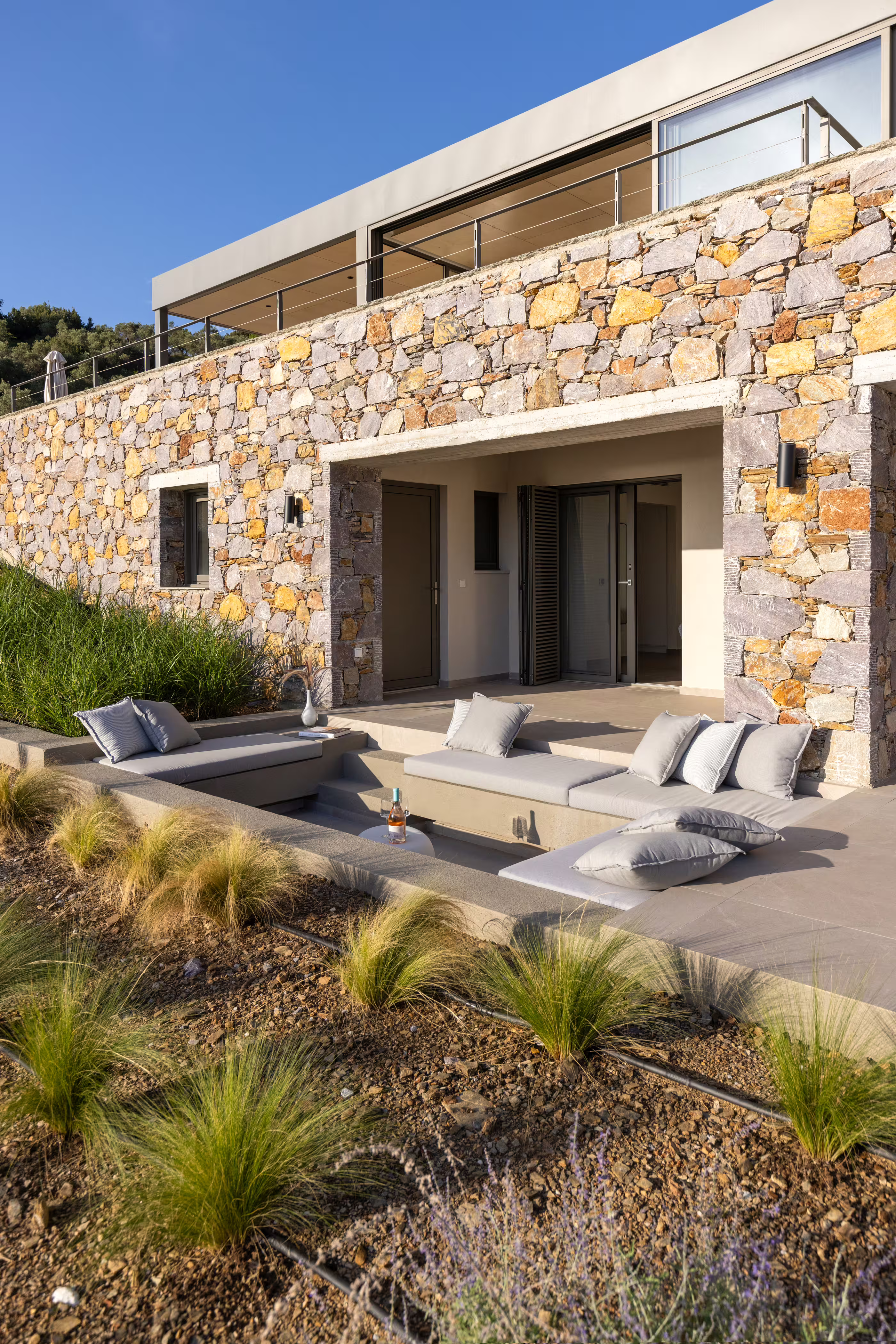 la Valley III is a contemporary 4-bedroom retreat designed by 3H Architects, surrounded by olive trees and pine forests with sweeping Aegean views. Created for families and friends, it features connecting master and junior bedrooms, open-plan interiors, and seamless indoor-outdoor living. Floor-to-ceiling windows flood the villa with natural light, while the spacious terraces, gas BBQ, and 9 m infinity pool invite relaxation at every hour. Set within a peaceful 1,000 m² estate near Kechria and Ligaries beaches, the villa offers daily concierge service, thoughtful amenities, and complete privacy, creating an effortless blend of modern comfort and the island’s untamed natural charm.