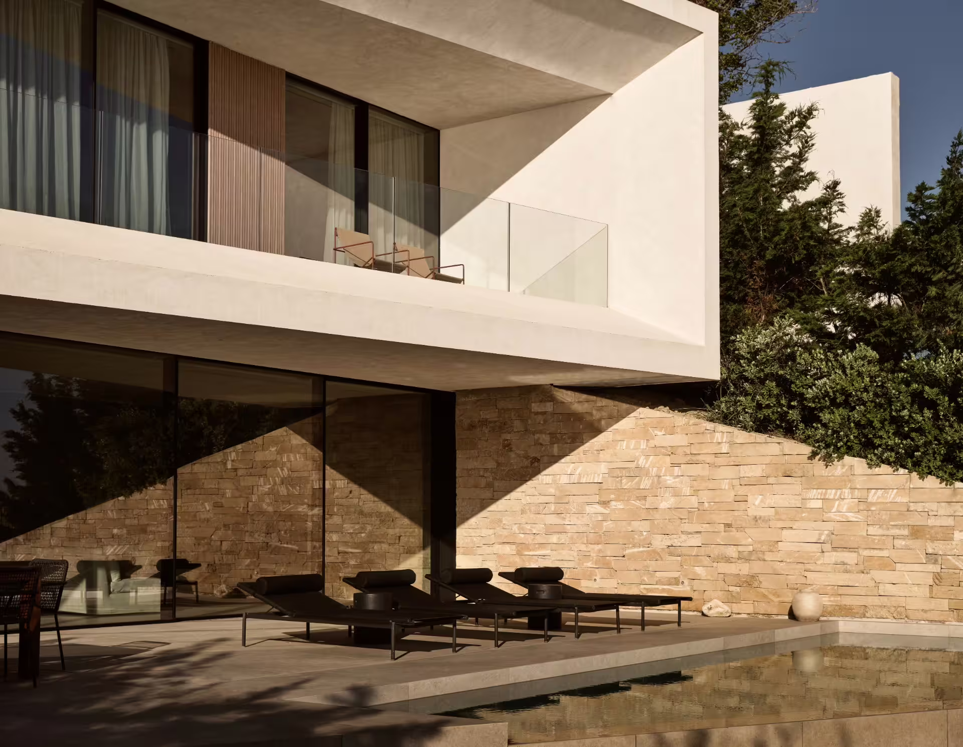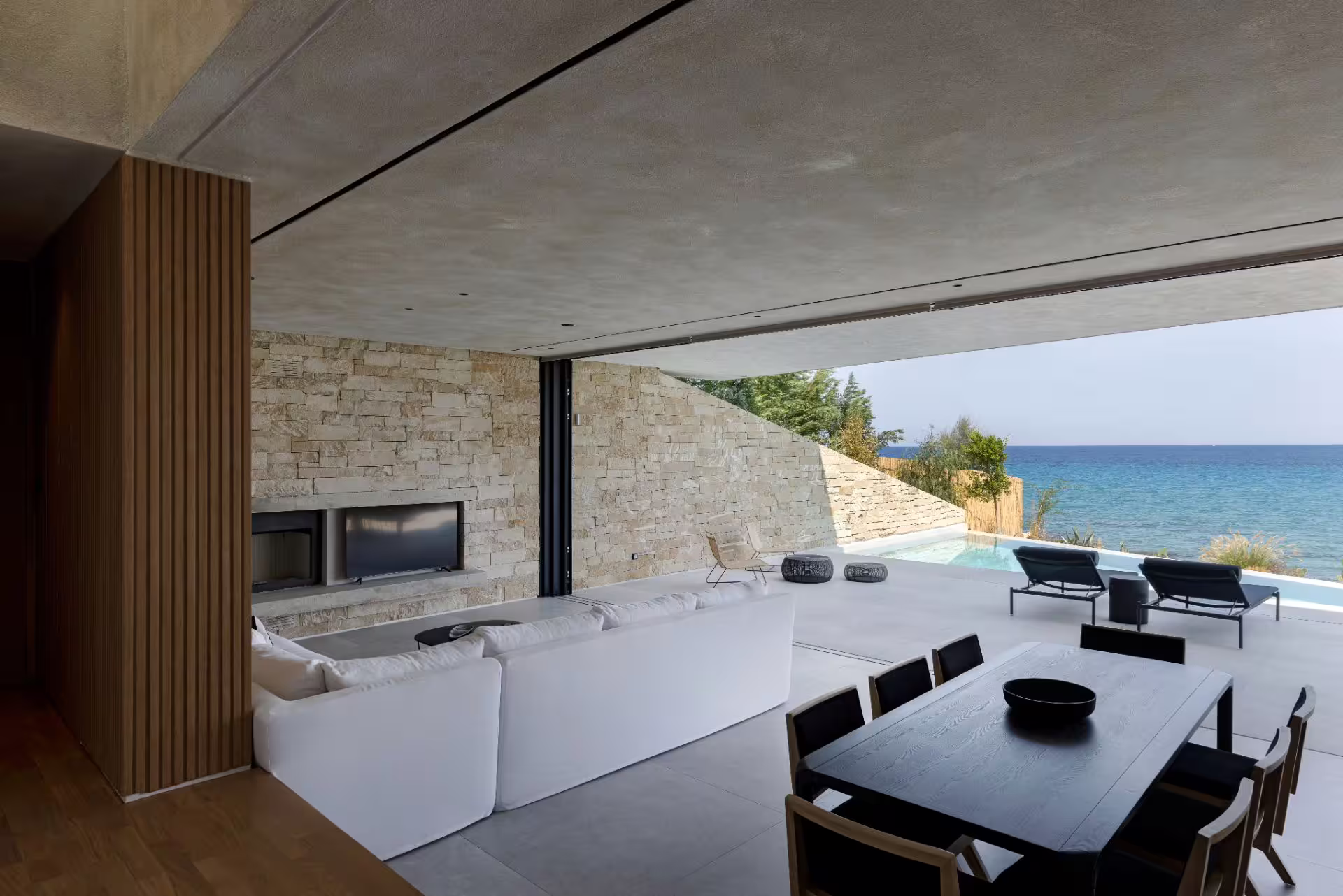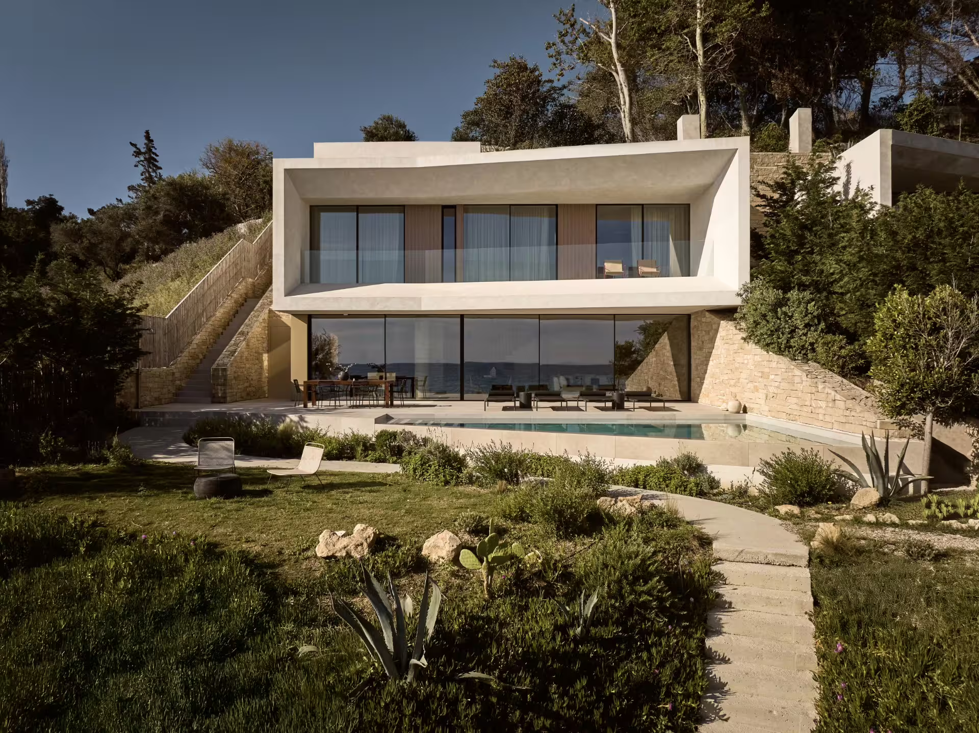 Villa Waterline I offers an elegant waterfront retreat of 210 sqm for up to eight guests. Featuring four stylish bedrooms with en-suite bathrooms and a bright, open-plan living area, the villa blends comfort and sophistication. Expansive windows fill the interiors with light and open onto the terrace, where a private pool, sunbeds, and shaded lounge create the perfect space to unwind. Three bedrooms feature sea-view balconies, while the fourth provides quiet privacy. Guests can enjoy alfresco dining by the pool with a built-in BBQ and breathtaking sea views. A seamless fusion of modern design and relaxed island living defines this exceptional villa.